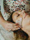 Il procure un état de bien-être profond, car je viens stimuler les méridiens et points d'acupression du visage. Il en résulte un véritable coup de glow interne et externe, puisque l'on vient réaliser un mini-drainage du visage et du décolleté.